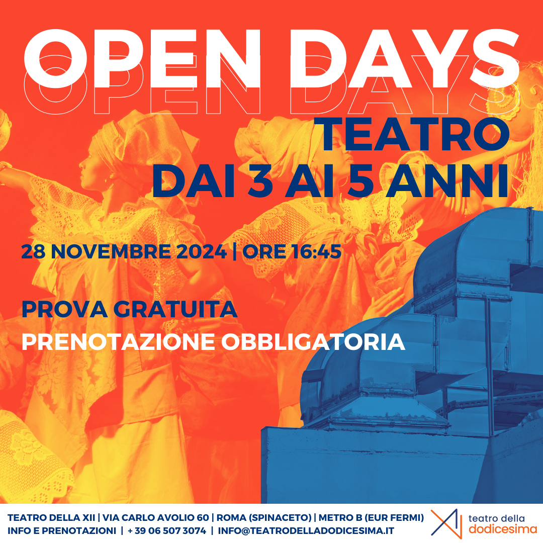 Il 28 Novembre il Teatro della XII apre il proprio palcoscenico a tutte e tutti per le lezioni gratuite di teatro per i bambini! Vieni a vivere un’emozione unica e scopri la magia della recitazione insieme a noi. ✨